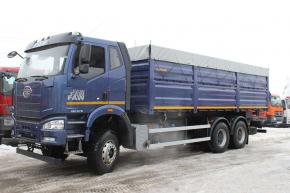 Официальный дилер реализует новый Самосвал зерновоз AMKAR-658983-41 на шасси FAW CA3250, J6P, 6х4, Euro V. Год выпуска 2019 Марка FAW Модель CA3250 Колёсная формула 6х4 Кабина J6P Фактическая грузоподъемность, кг 25000 Снаряженная масса 14 650 кг Полная масса 35 100 кг Нагрузка на переднюю ось (в загр. состоянии) 7 500 Нагрузка на заднюю тележку (в загр. состоянии) 27 600 Габаритные размеры автомобиля Длина, мм 10 656 Ширина, мм 2 550 Высота, мм. 3 310 Колесная база (мм) 4 800 + 1 350 Колея передних колес (мм) 2 020 Колея задних колес (мм) 1 890 Максимальная скорость (км/ч) 90 Мин. диаметр разворота (м) 18 Двигатель CA6DL2-37E5 Объем (л) 8.6 (L) Макс. мощность (кВт/л. с.) 276 кВт / 375 л. с. / 2100 об/мин Макс. крутящий момент 1500 Н. м при1300-1500 об/мин Экологический класс EURO 5 ТНВД BOSCH CPN2.2-6DL2 Форсунки BOSCHCRIN2-6DL2 КПП с КОМ FAST, 12JSD160T Шины 315/80 R 22.5 Автоматический регулятор тормозов Haldex Антиблокировочная тормозная система WABCO Узел воздухоосушителя и клапаны WABCO Кабина со спальным местом Да Кондиционер Да Автомагнитола Да Алюминиевый топливный бак, л. 400 Антикоррозийная обработка рамы Да Цвет кабины Синий Бак Мочевины, л. 40 Противооткатные брусья Да Характеристики самосвальной платформы Габариты платформы (длинна х ширина х высота) 7 258 х 2 550 х 1 650 мм Объем самосвальной платформы – 30 куб. м Платформа из профилированный панелей Верхние боковые борта - фиксированные, нижние боковые борта с верхней навеской, передний борт - фиксированный, задний нижний борт с верхней навеской В задней части кузова предусмотрена металлическая площадка с откидной лестницей для доступа в кузов и сматывания/разматывания полога Тент-каркас прямой серого цвета Материал кузова: сталь «09Г2С» толщина днища – 4 мм, толщина панелей бортов – 3 мм Самосвальный кузов с двухсторонней боковой разгрузкой с частичным подъемом назад на 30 градусов Телескопический гидроцилиндр фирмы «Hyva» в количестве 2 ед. с продольным расположением Управление механизмом подъемом – дистанционное из кабины водителя Предусмотрена установка боковой защиты, ТСУ, фонарей автопоезда, электро-, пневмо-, гидровыводов Пластиковые крылья Металлический инструментальный ящик Самосвал в наличии на стоянке Гарантия от завода производителя Стоимость указана с НДС, включая утилизационный сбор Возможность приобретения в лизинг.