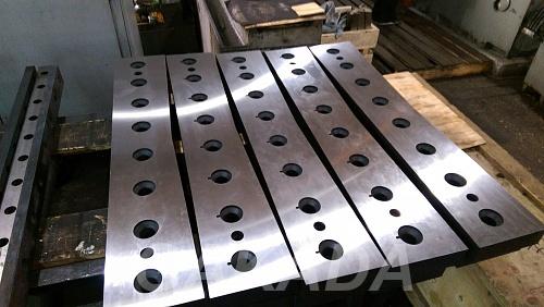 В наличии ножи в Москве для ножниц по металлу 625 60 25, 670 60 25, 510 60 20, 540 60 16, 550 60 20, 550 60 16, 590 60 16, 520 75 25. Заточка ножей для гильотинных ножниц.